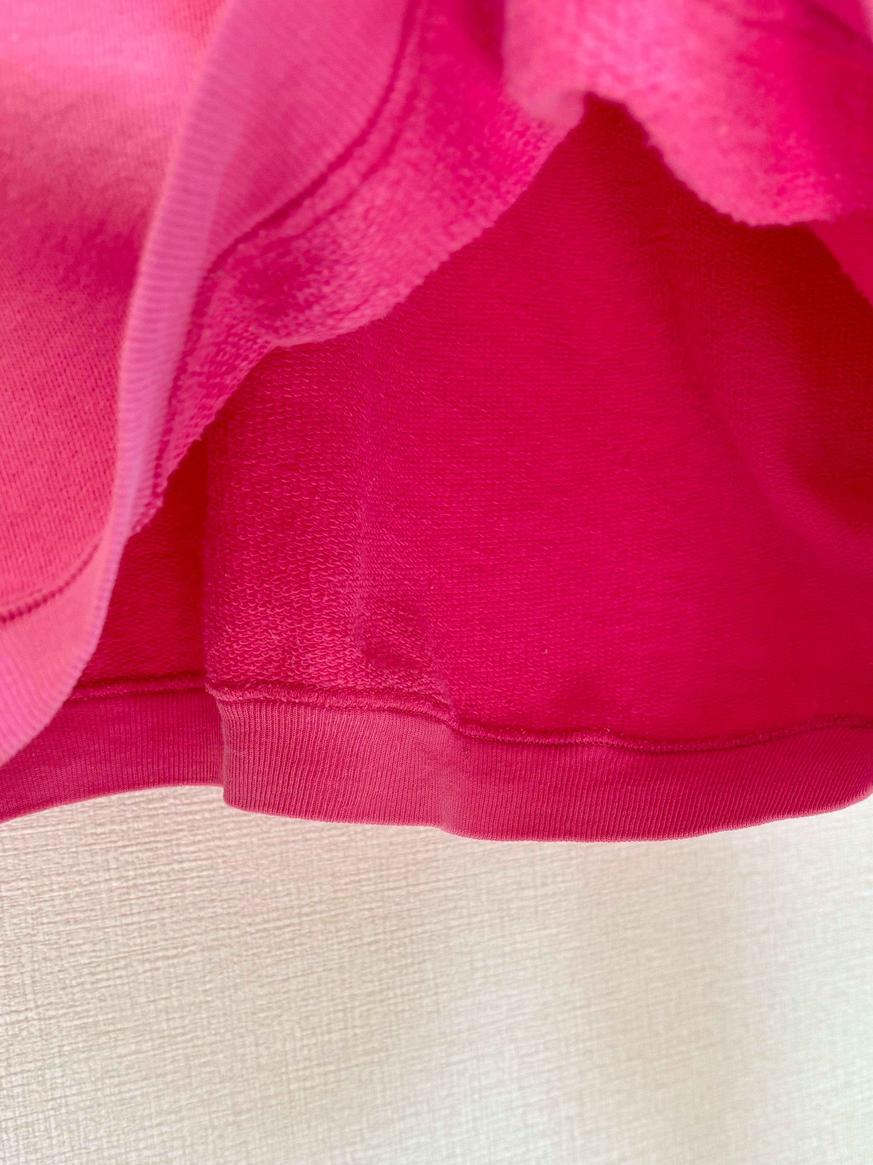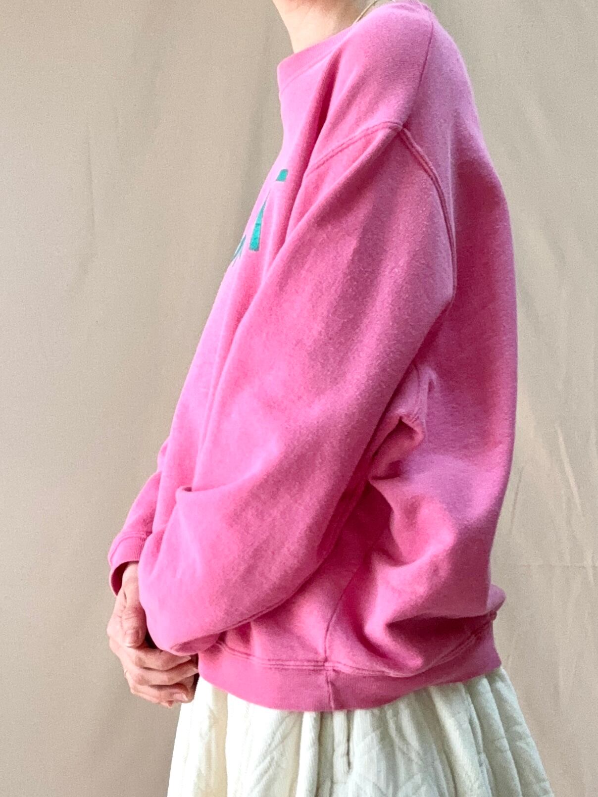 ピンクのボディに、エメラルドグリーンの英字プリント