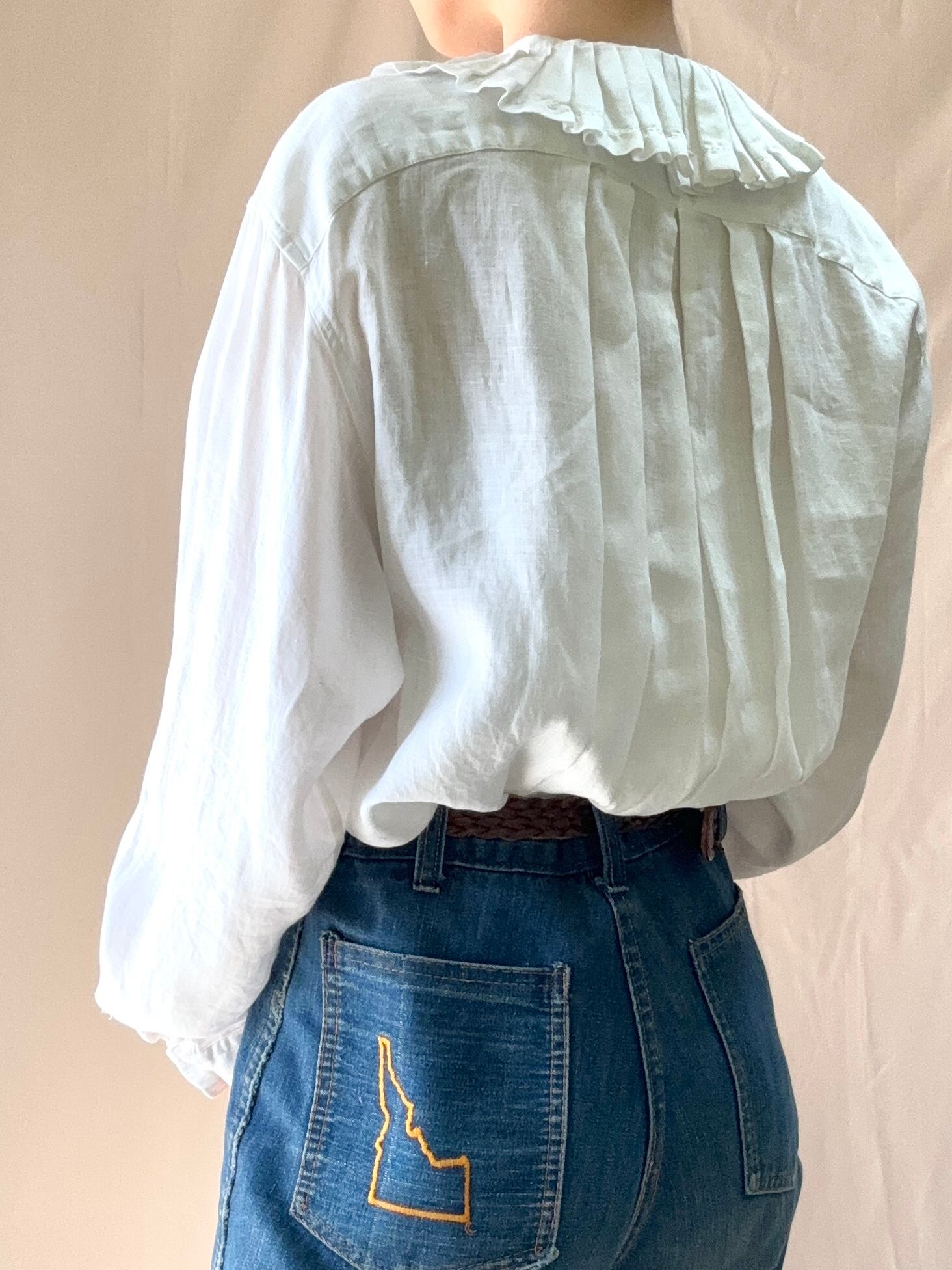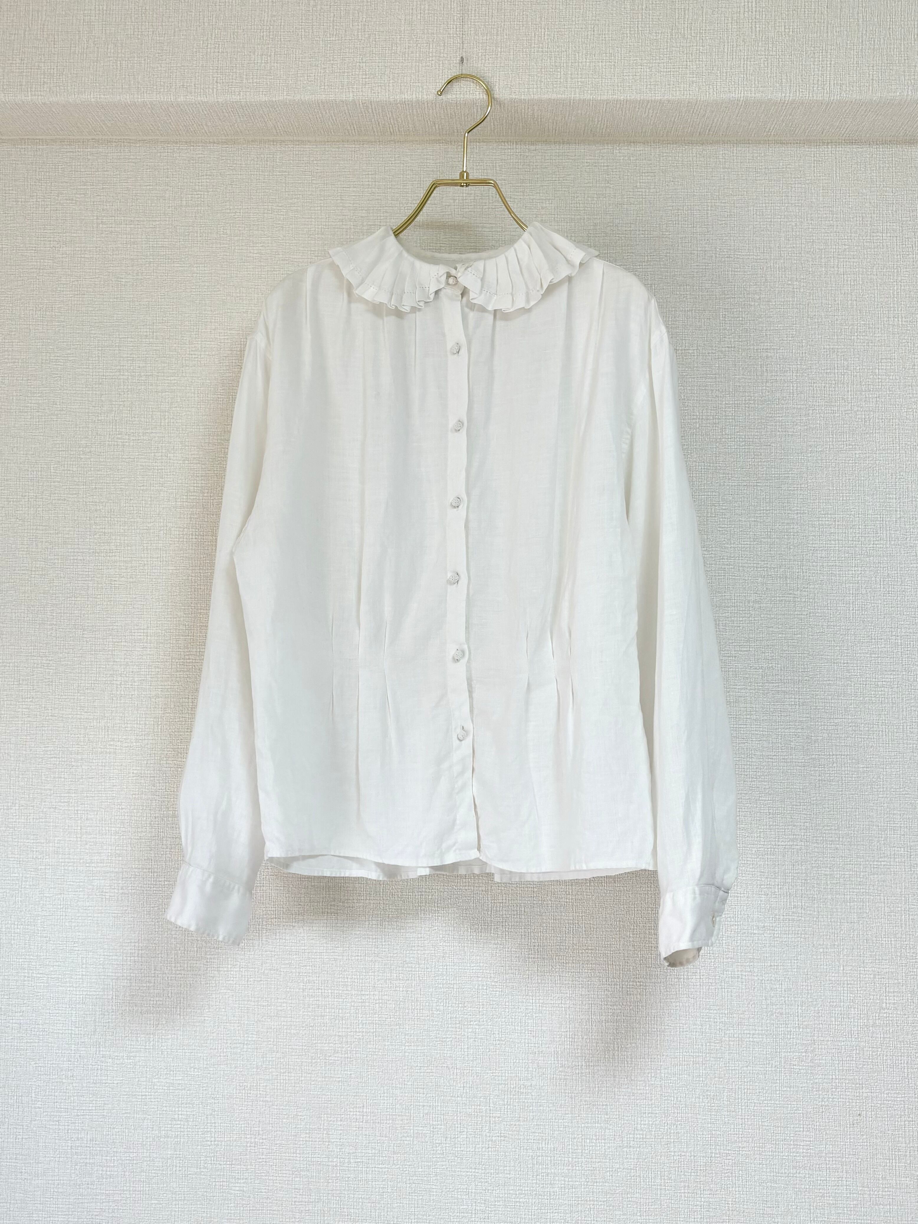 丁寧に折られたプリーツカラーが目を惹く、ラルフローレンのブラウス
