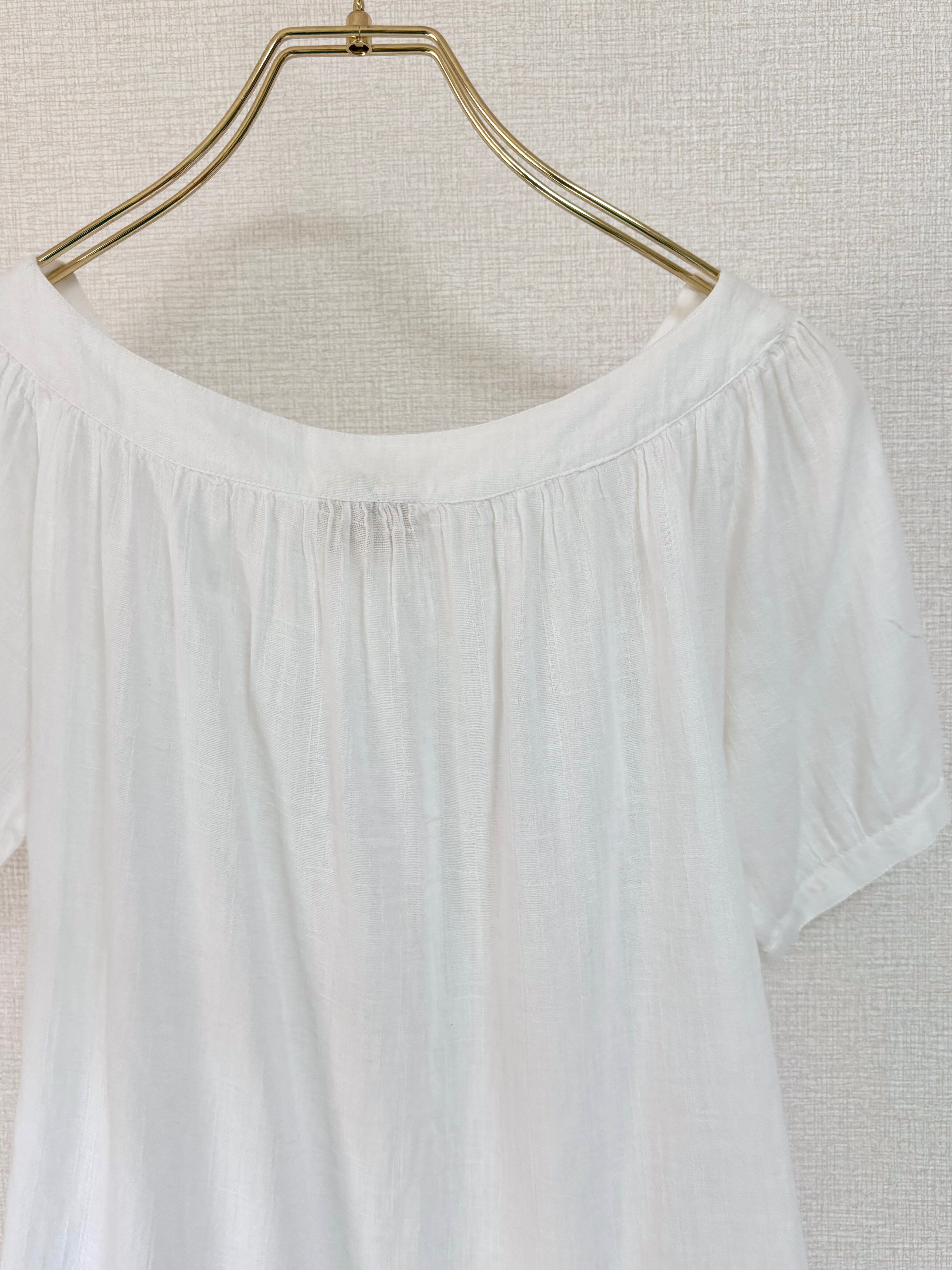 フロントのボタンを外して、ショートガウンのように羽織るスタイルもおすすめです◯