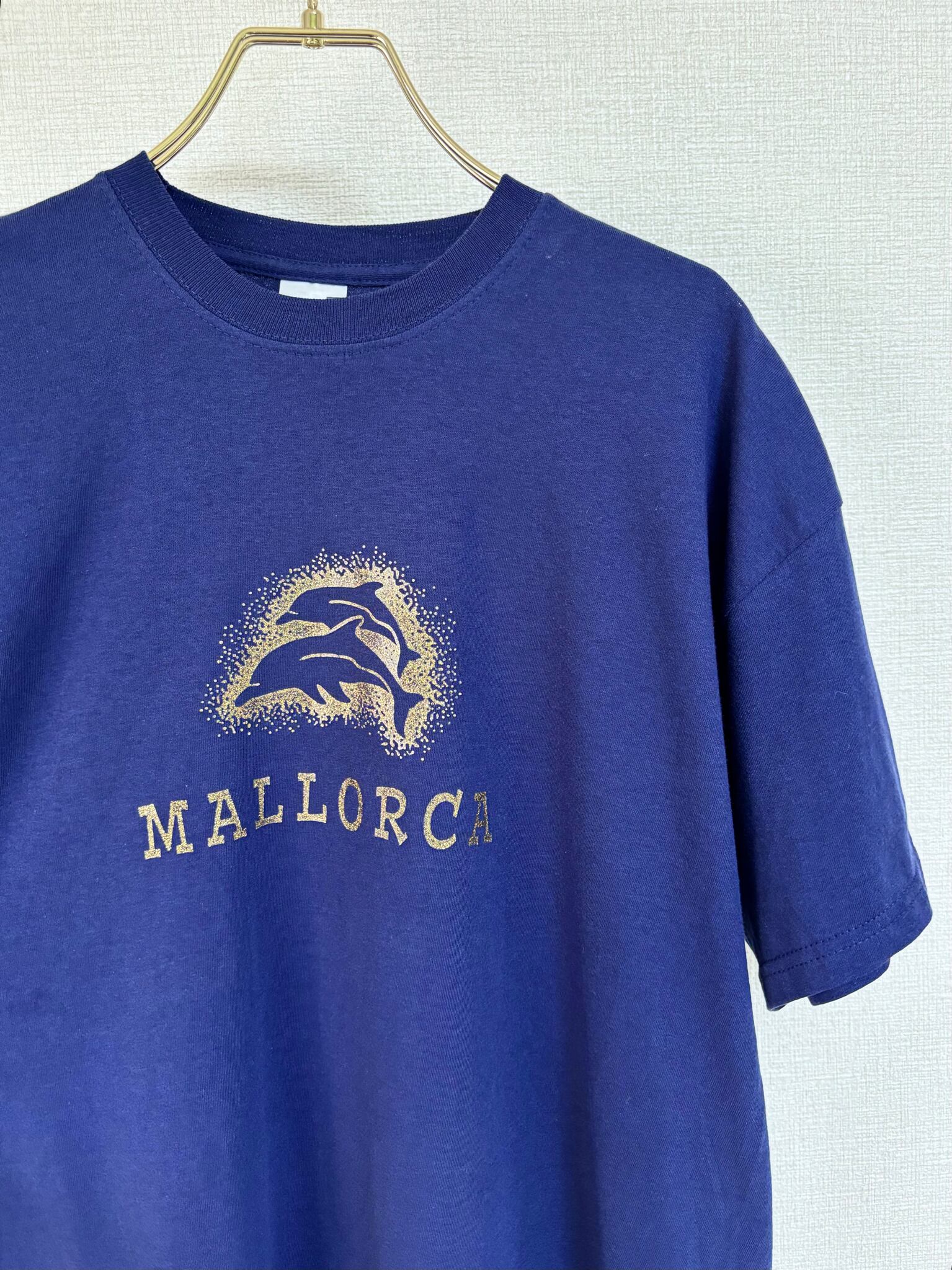 深い海の色のネイビーにきらりと光る、ゴールドグリッターのイルカプリント