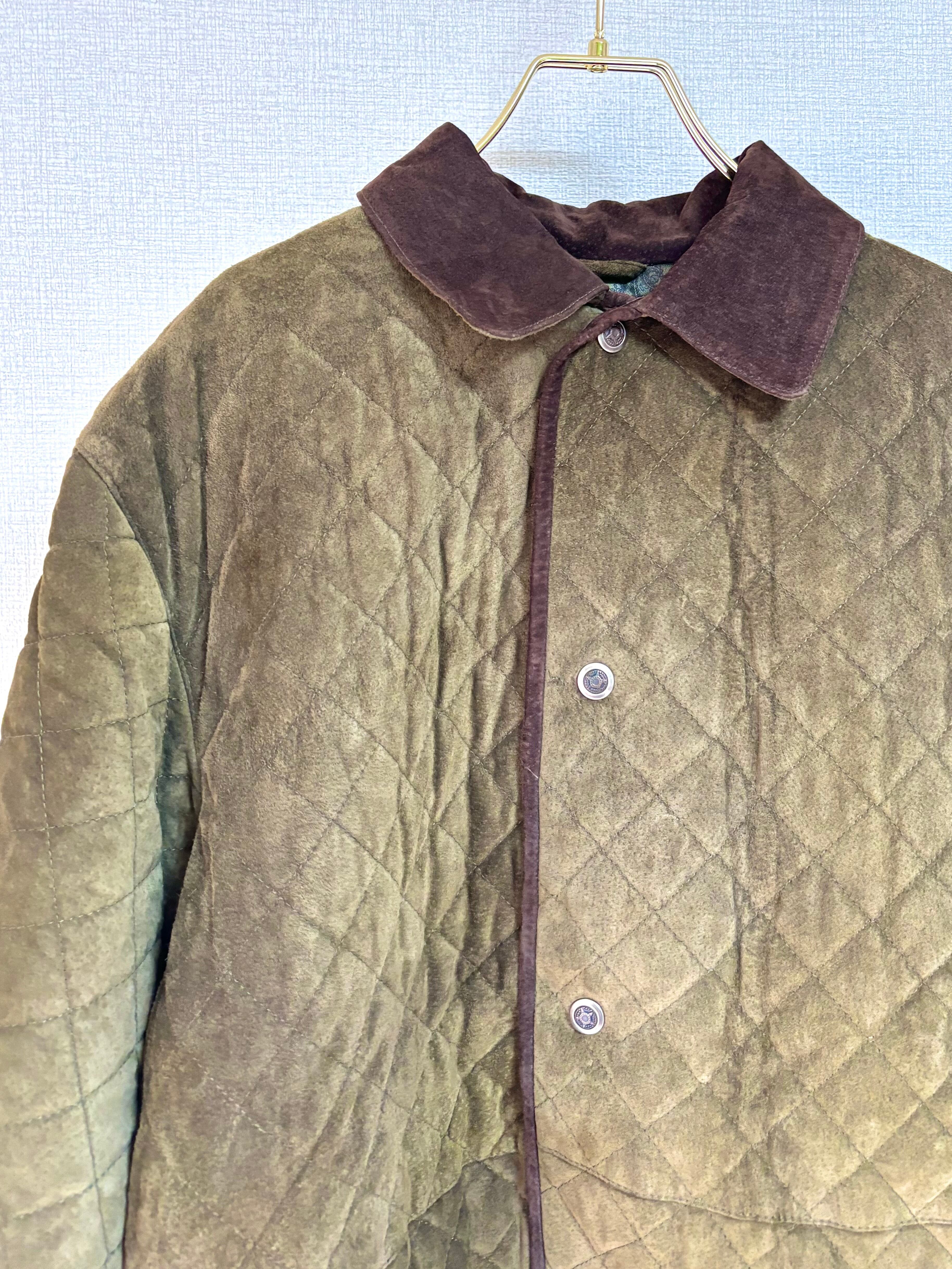 カーキとブラウンのコントラストが目を引くキルティングジャケット