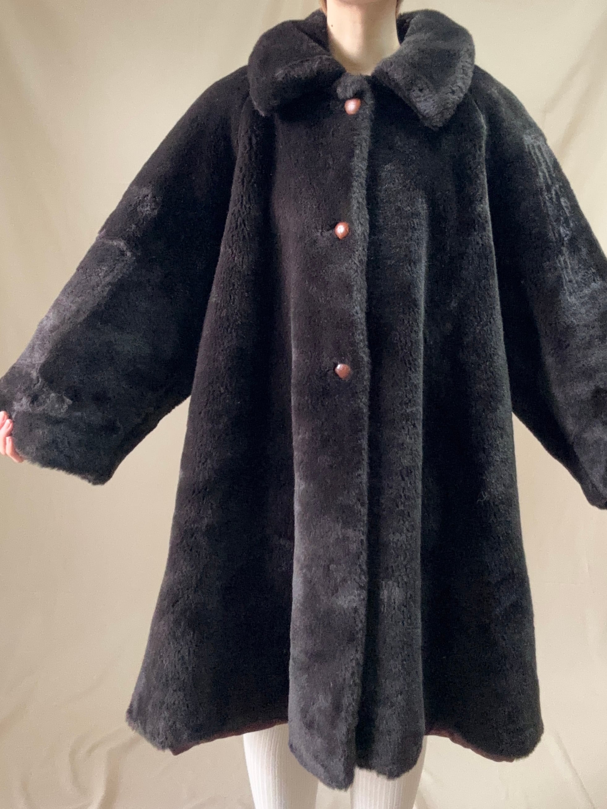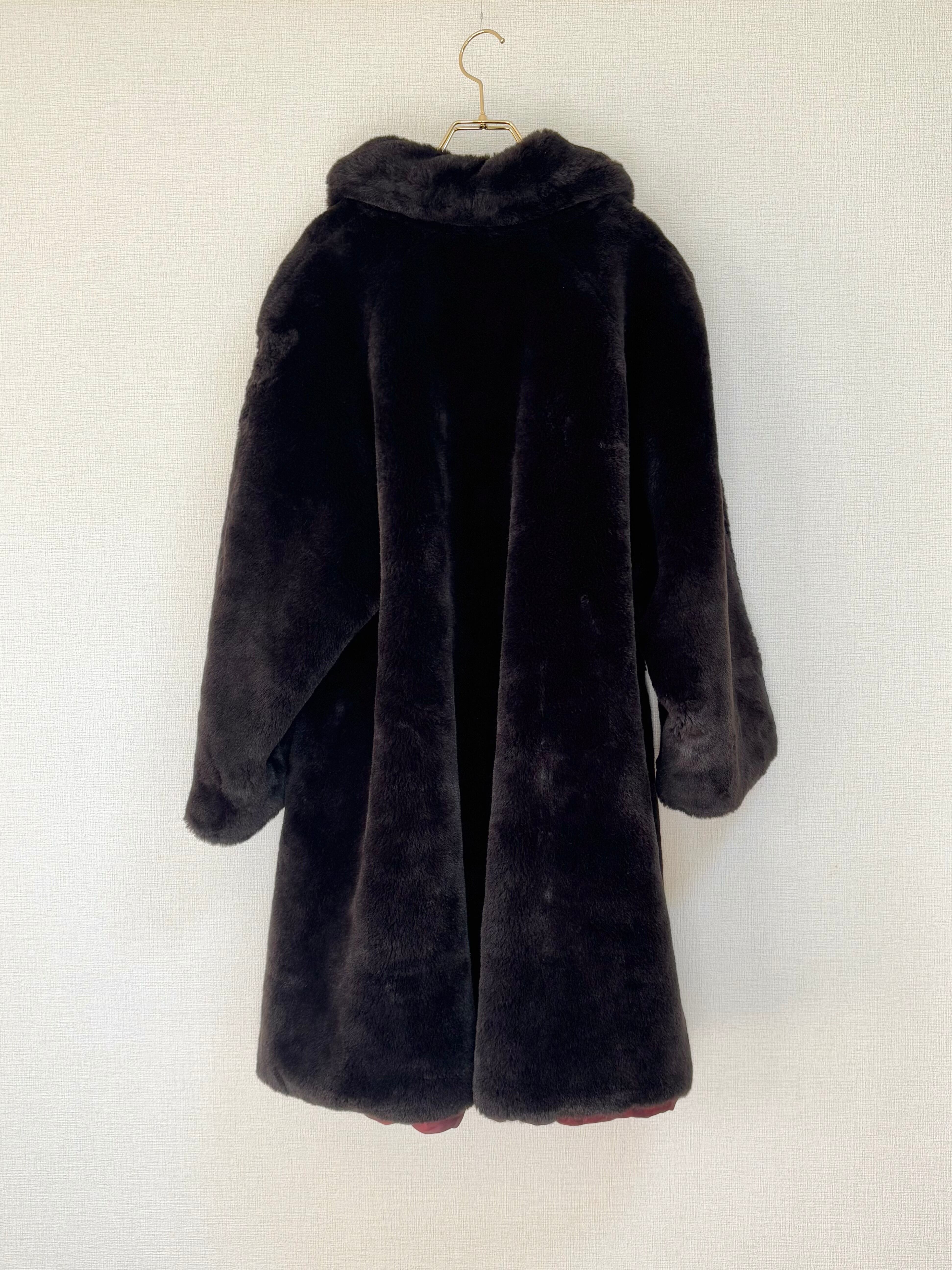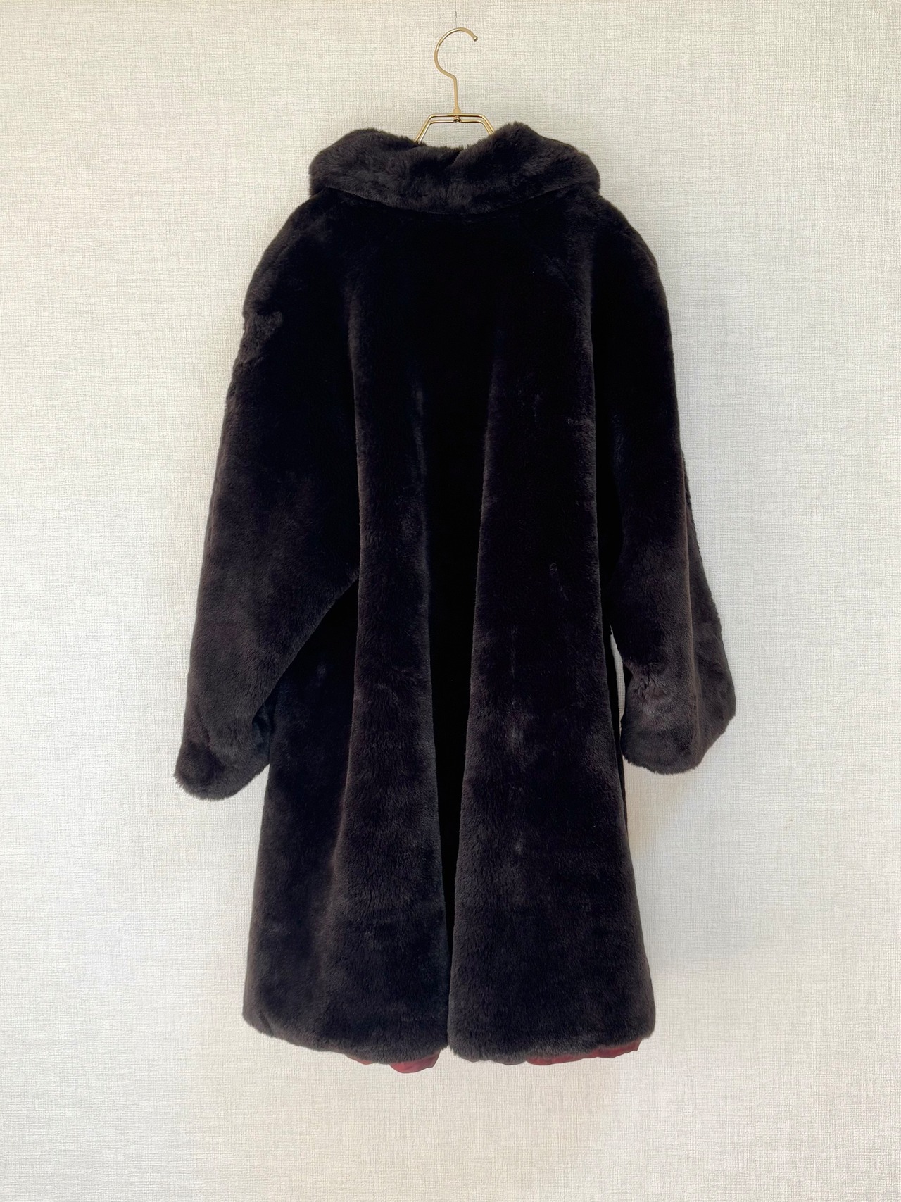 上品なダークブラウンカラーに、皮調のくるみボタンが並んだデザインがとても可愛らしい一着です。