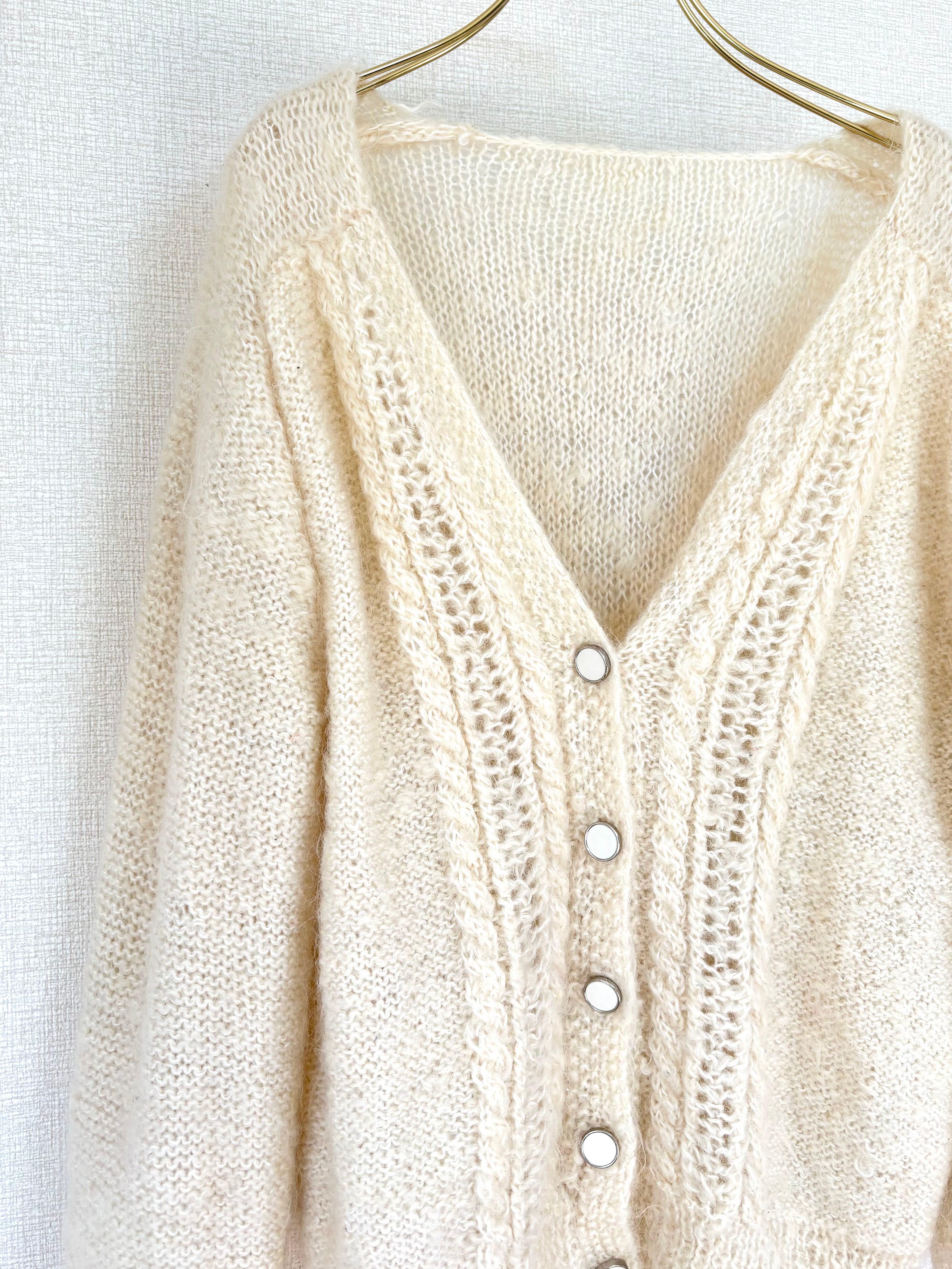 肌馴染みのいいアイボリー色に、きらりと光るシルバーフレームのボタンが映えます。
